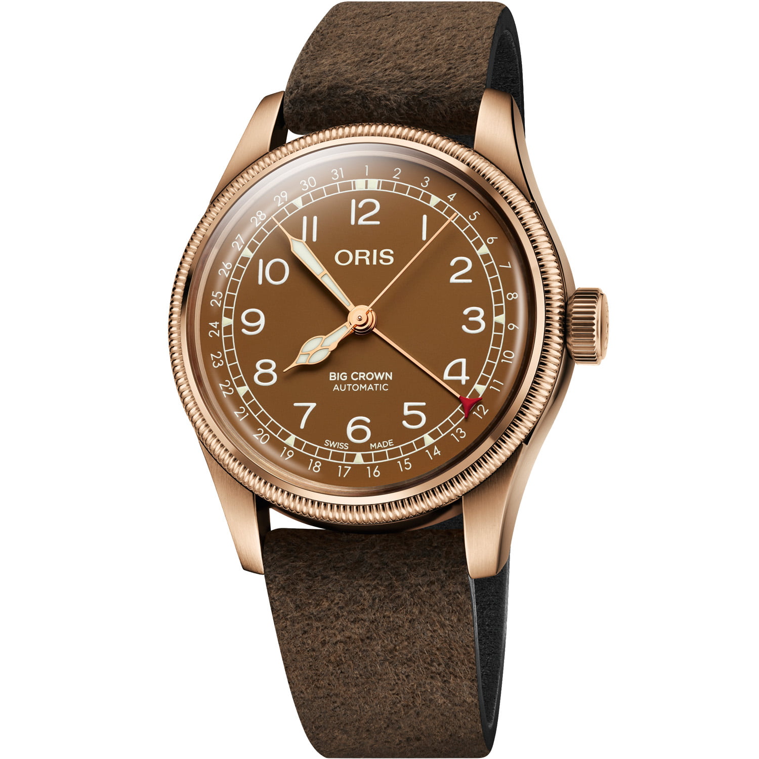 A bronze watch that shows the time and date? Yes, but for many reasons, the historic Oris Big Crown Pointer Date is far more than the sum of its parts. Oris’s Big Crown Pointer Date first entered the Oris collection in 1938, more than eight decades ago. Today, the same design principles continue to inform the Big Crown Pointer Date. Over time, it’s been refined with material and mechanical improvements, but its timeless pioneering spirit remains.”