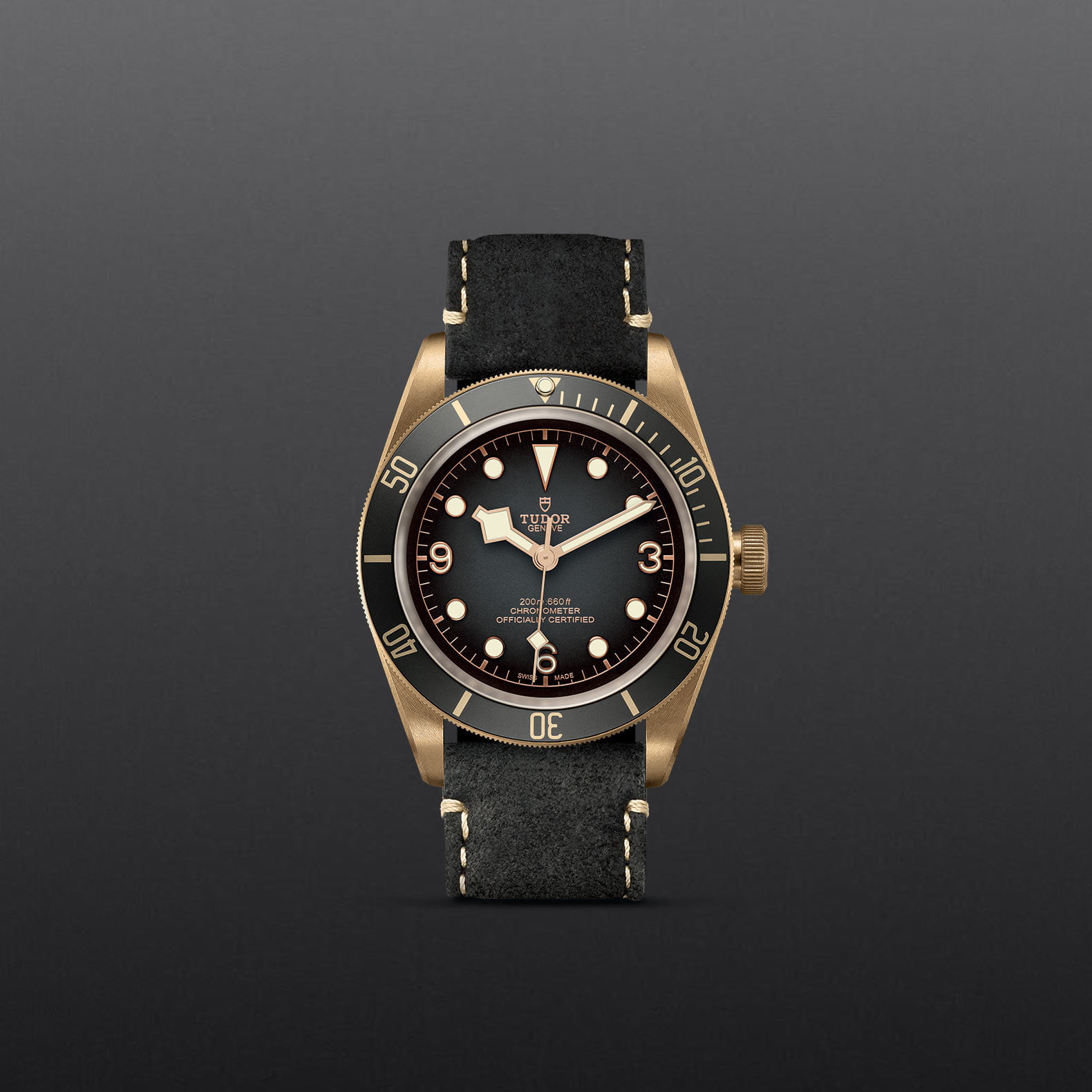 The characteristic element of the Black Bay Bronze is an imposing bronze case, which measures 43mm in diameter. It is an aesthetic reference to the use of bronze in historic ships and other diving equipment. The highperformance aluminium bronze alloy guarantees the development of a unique patina to match its user's habits.