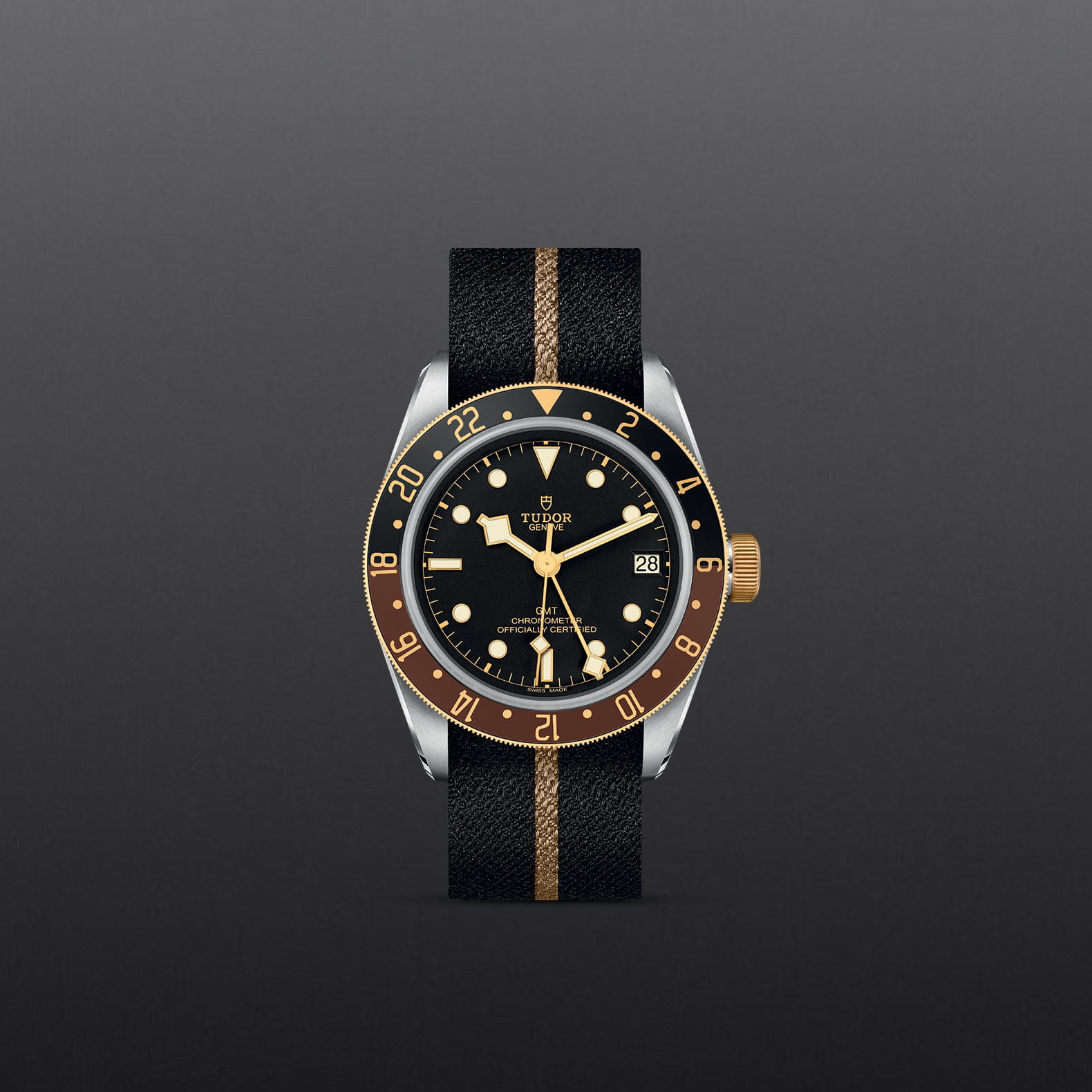 41mm steel case, Black fabric strap with beige band