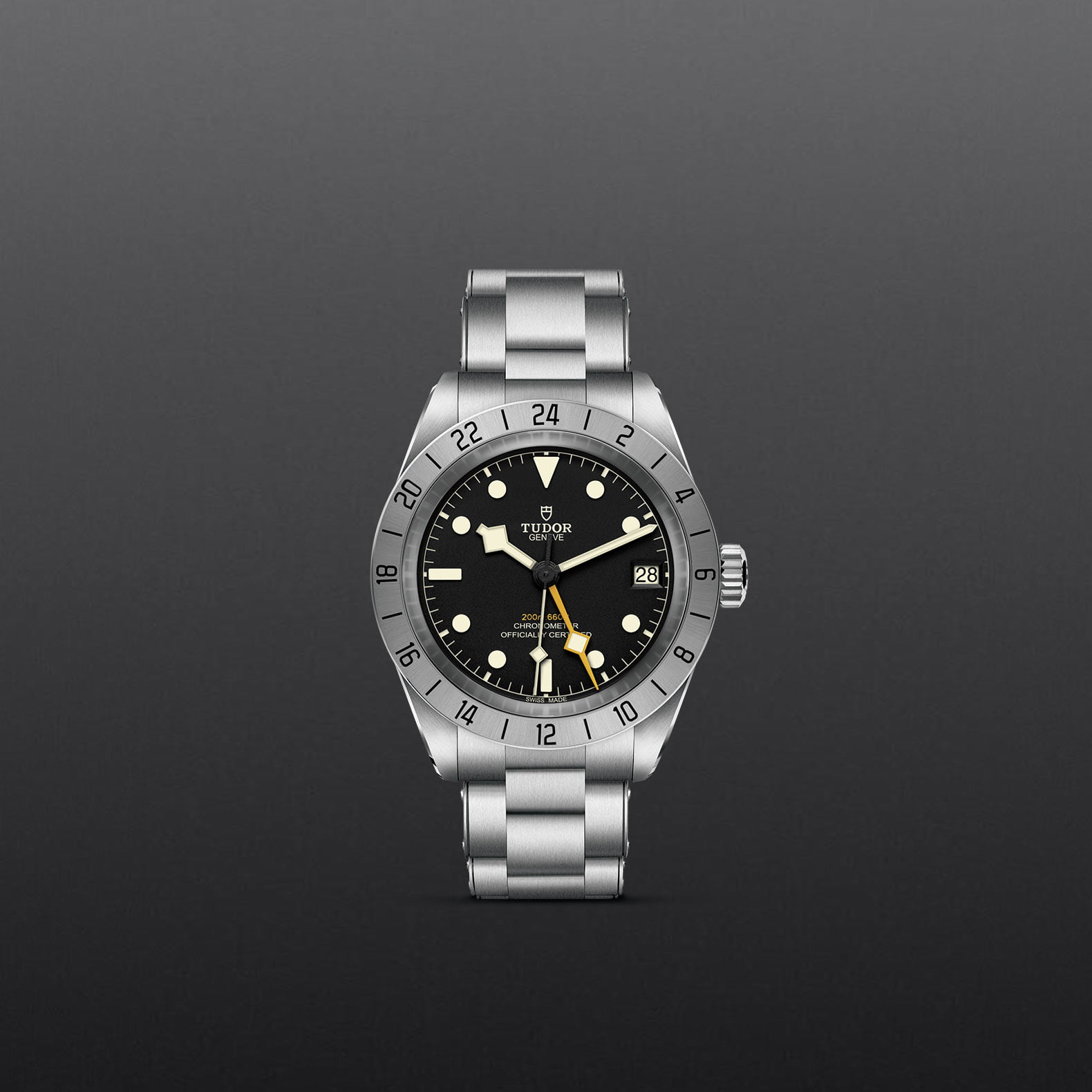 The Adventurers' Black Bay, the Black Bay Pro is a technical model with a whole new aesthetic: a tool-watch designed for professional use. With a 39mm case and a fixed steel bezel the watch boasts a Manufacture Calibre with built-in GMT function.